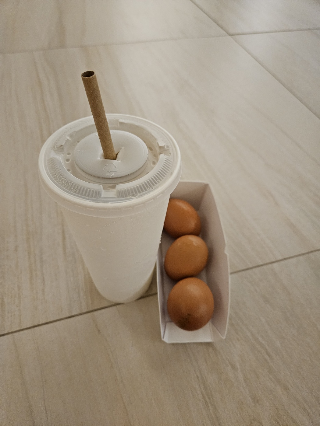 바닥 한 켠에 자리를 잡고, 계란을 까 먹어 봅니다. 사람이 워낙 많다 보니 머리카락 등은 어쩔 수 없습니다.