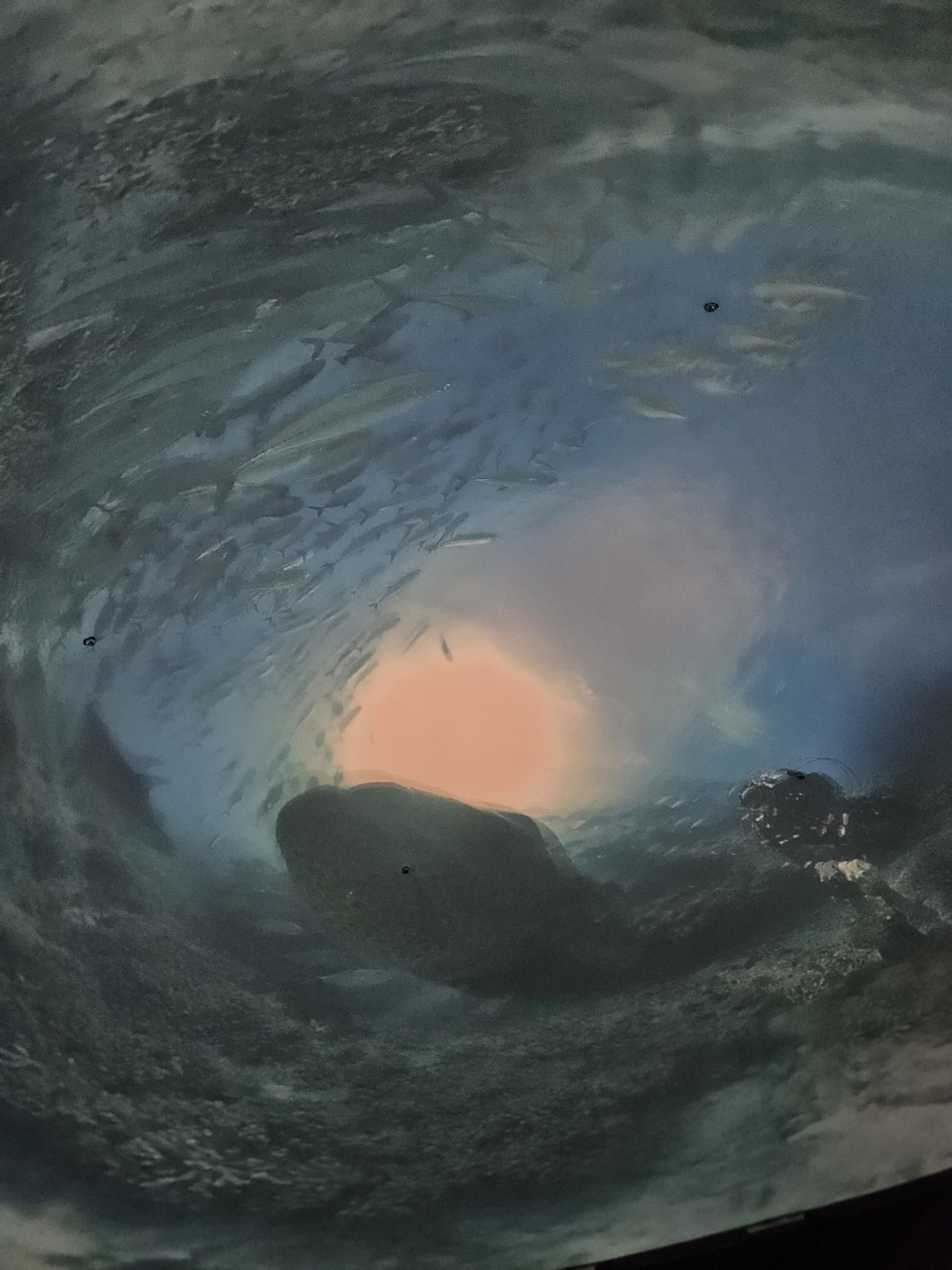 천장에 멋진 미디어아트가 보여집니다. 오로라, 바다속 풍경, 별이 빛나는 밤 풍경등이 차례로 보여져요.